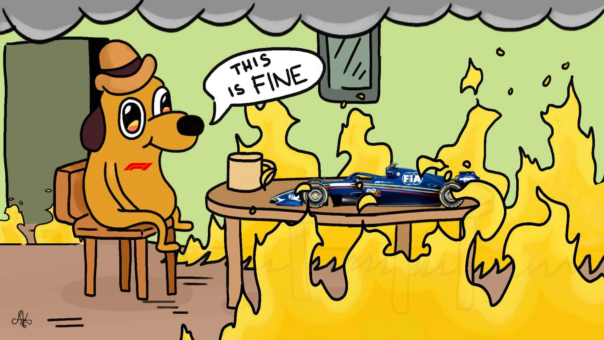 «Porque la ley nos salvará, porque la ley es mágica» Tanto la UE como la F1 creen que, si se legisla en contra de la contaminación, está desaparecerá, y si hay que llevarse toda la industria automotriz por delante, dirán «This is fine» y listo.